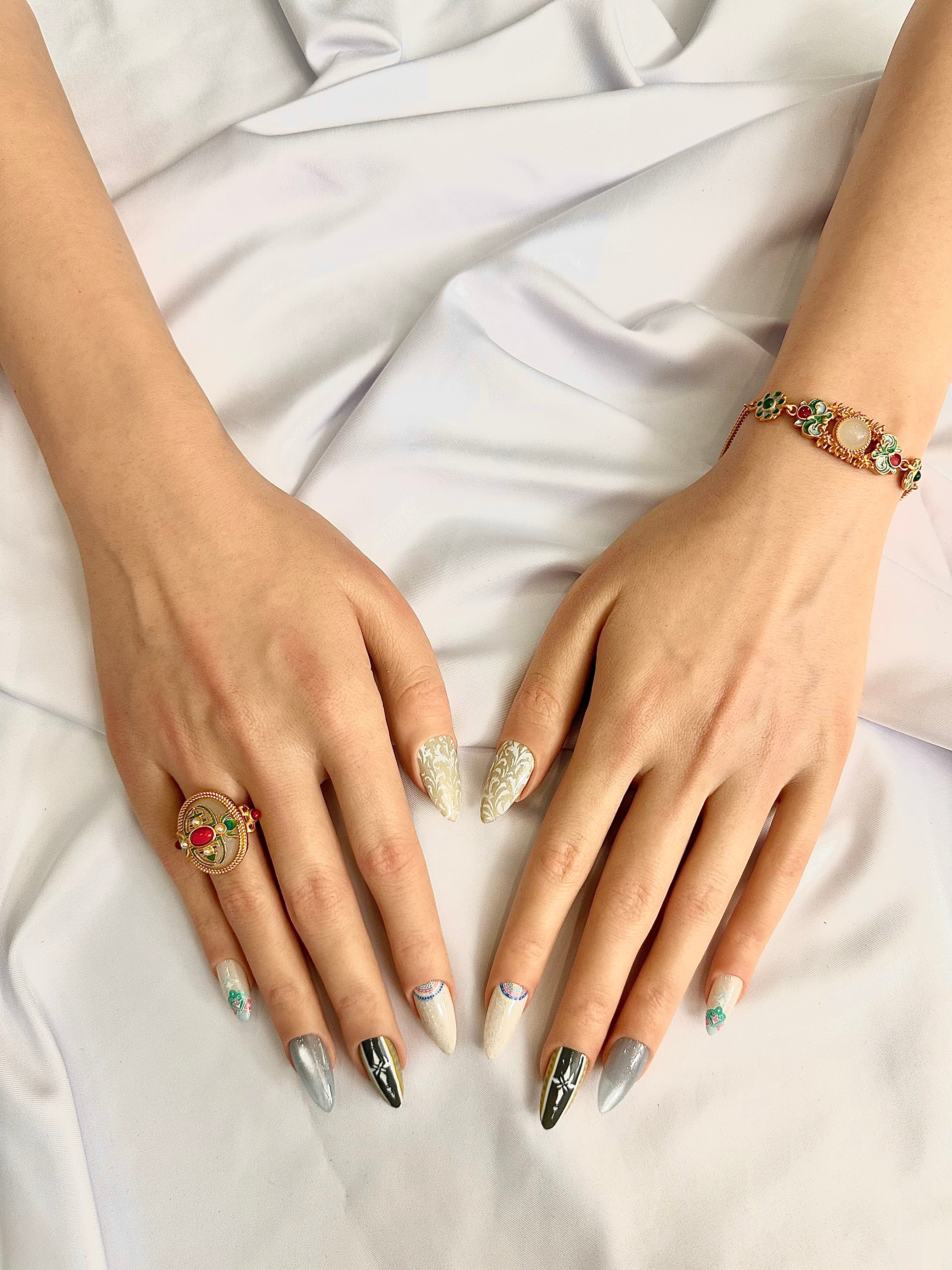 Móng dán phong cách Trung Hoa – Họa tiết sườn xám sang trọng
