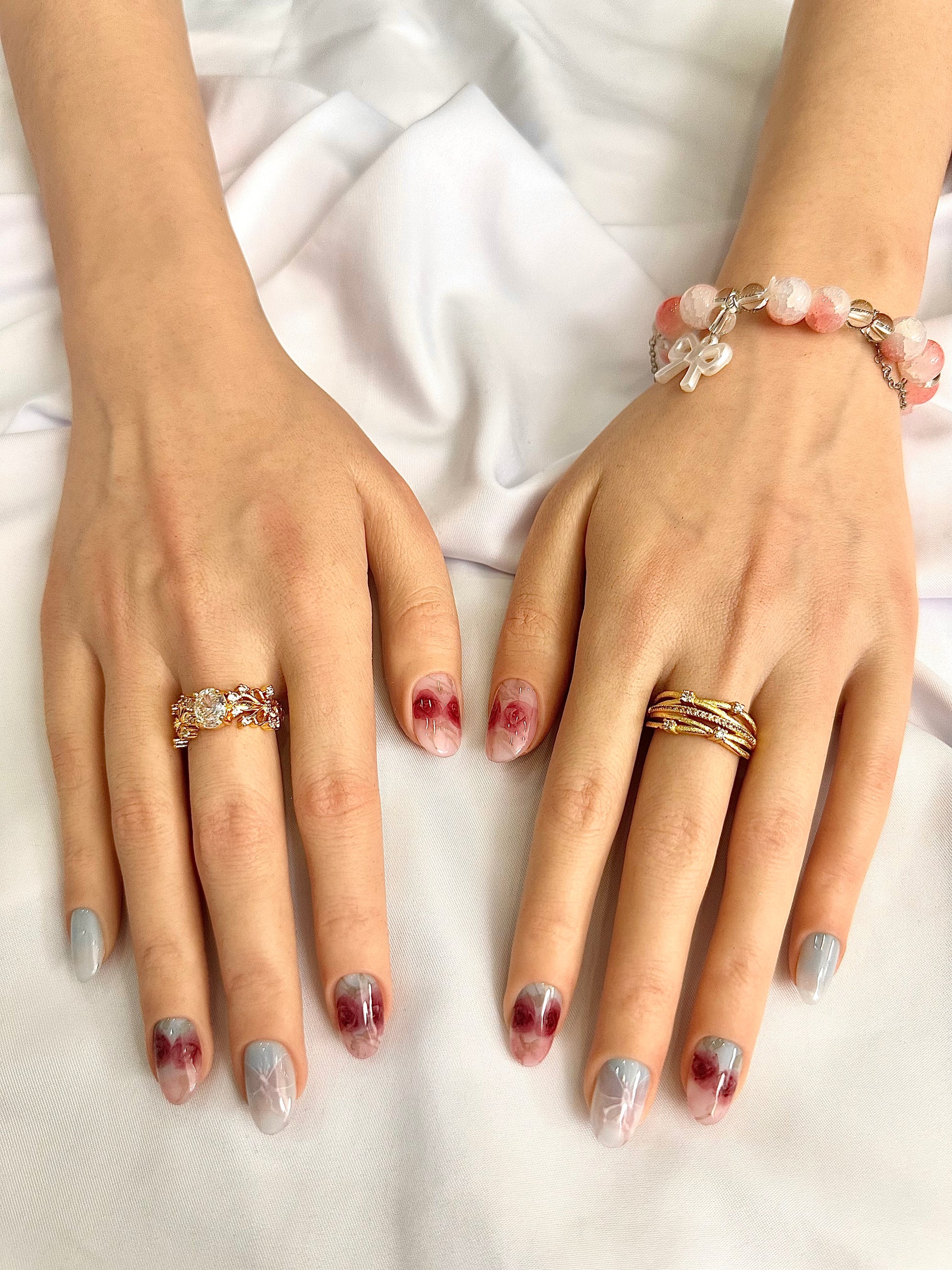 🌹 玫瑰手繪感☁️ 雾感藍灰跳色🩰 夢幻輕柔漸層