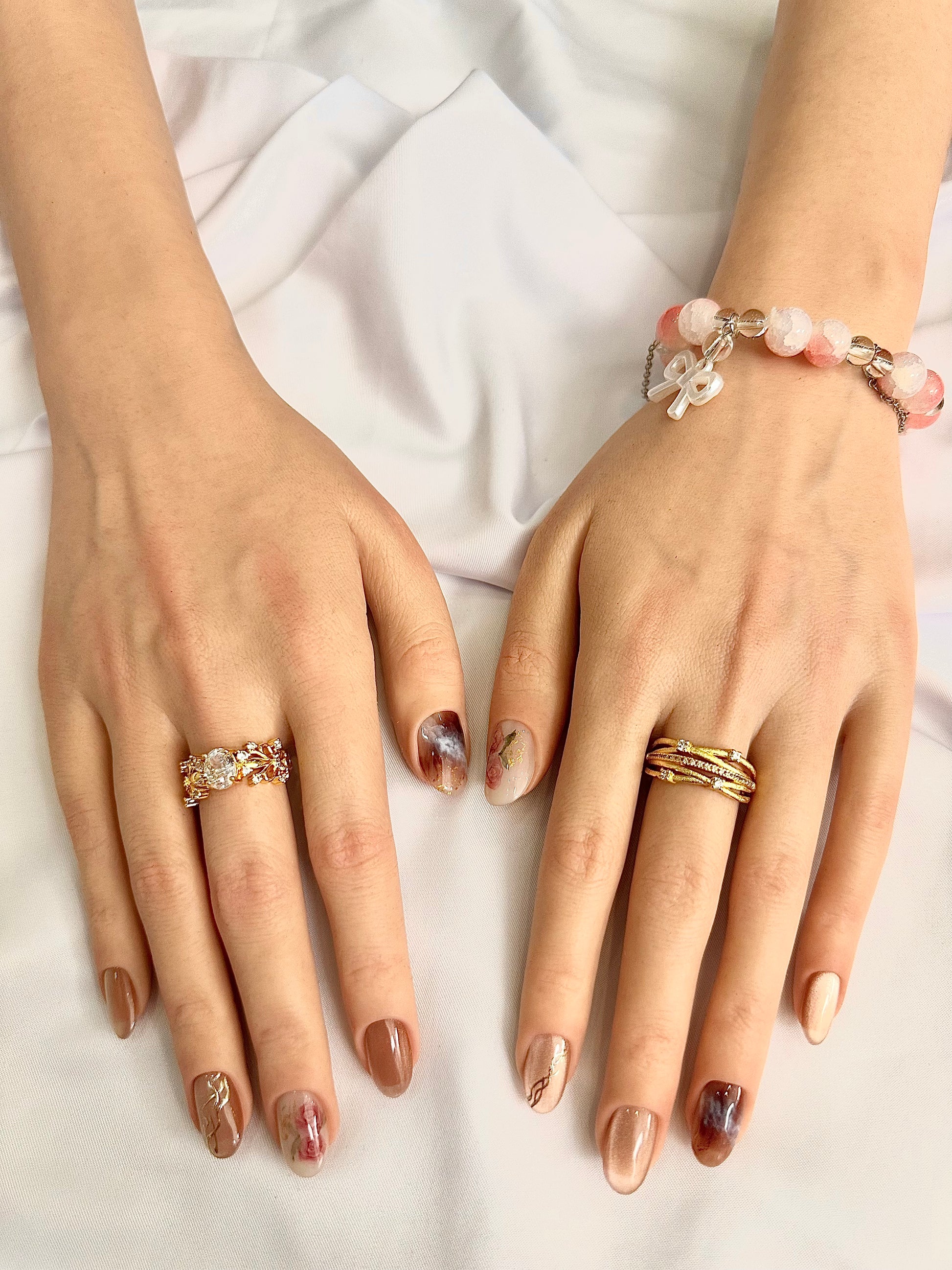 玫光緞影香檳緞金色與溫柔奶茶暈染交織,搭配手繪玫瑰貼花與金線點綴,展現高雅浪漫氛圍。無論日常還是宴會,都能為指尖增添一抹光影細語的溫柔。🌹✨🎀